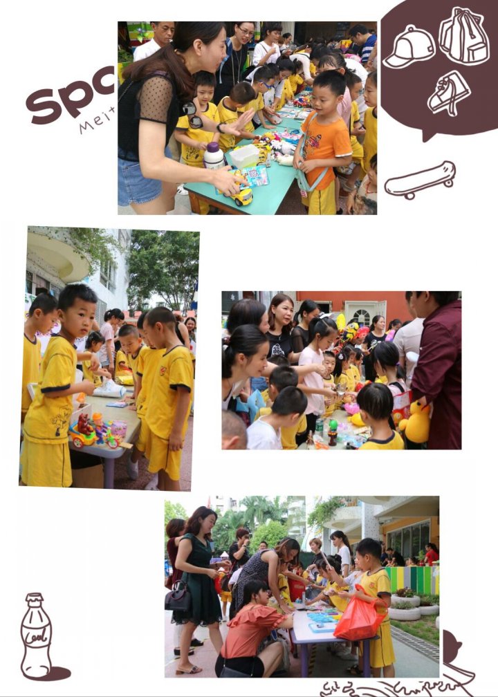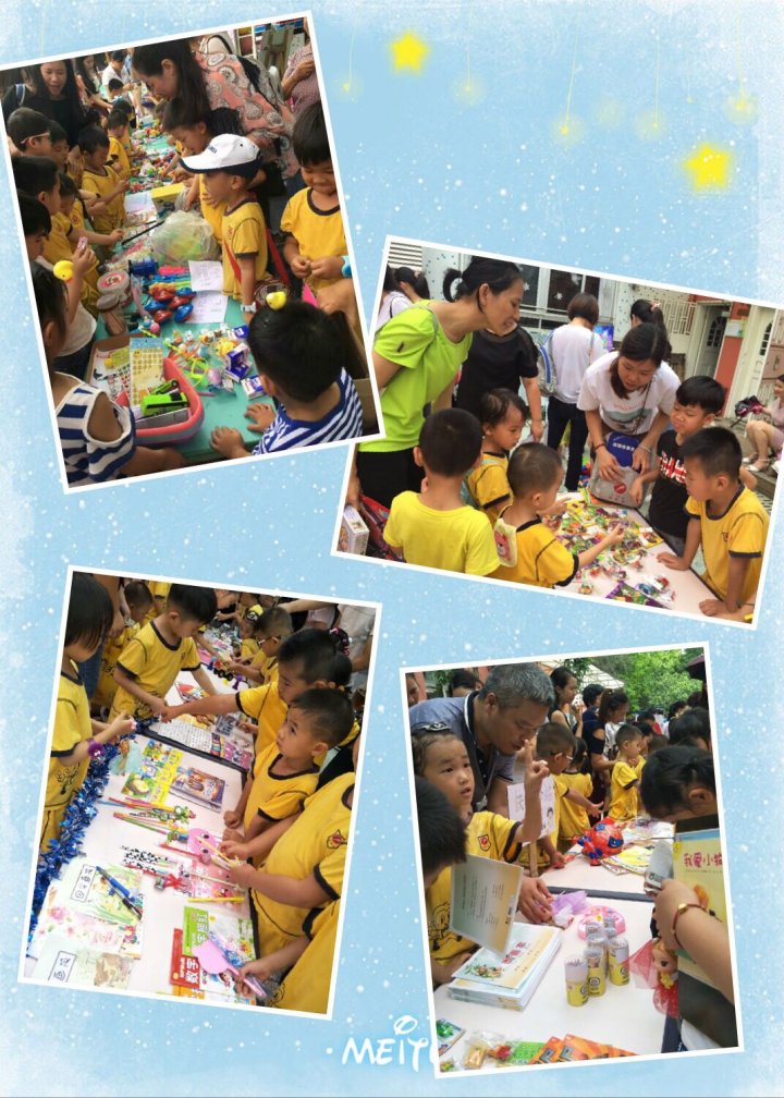 當我們還沉浸在游園活動的歡聲笑語中時,操場也正傳來一陣陣叫賣聲,這是大班級的跳蚤市場正如火如荼地進行著。盛夏的驕陽再火辣也抵擋不住孩子們的熱情,每年一度的義賣活動,為的是讓孩子們體驗公平買賣、勞動快樂,學會認識貨幣、學會推銷、購買商品,培養孩子們的動手、動腦、交流等能力,同時還能將孩子閑置的物品再次利用,從小就培養勤儉節約的意識。