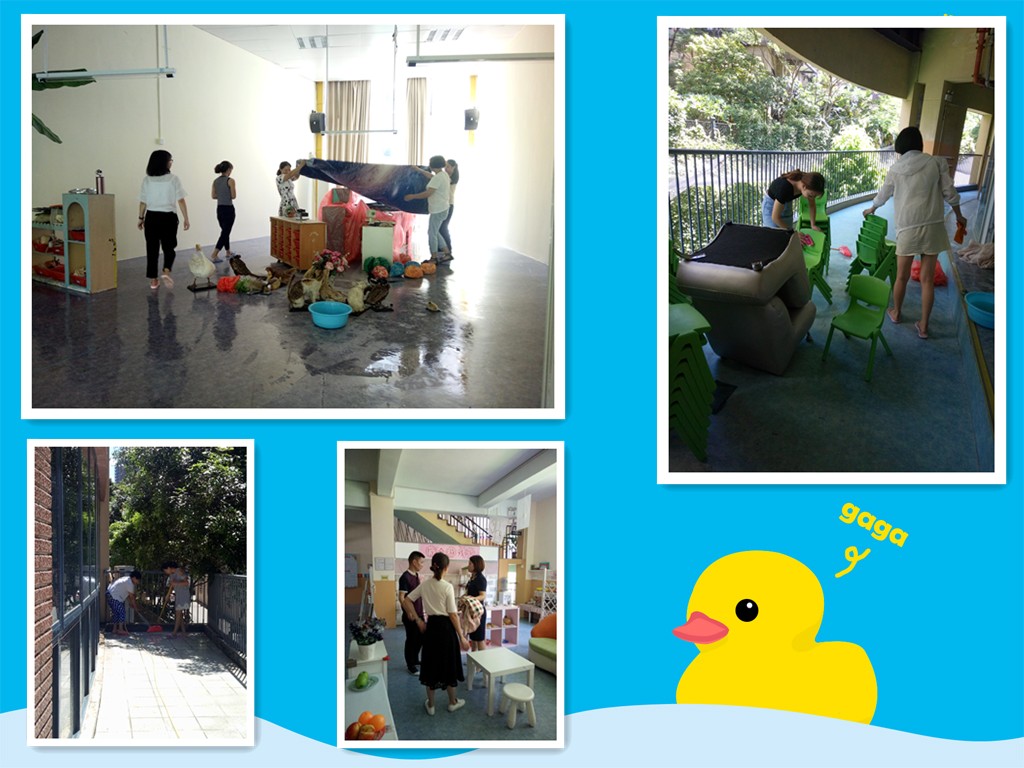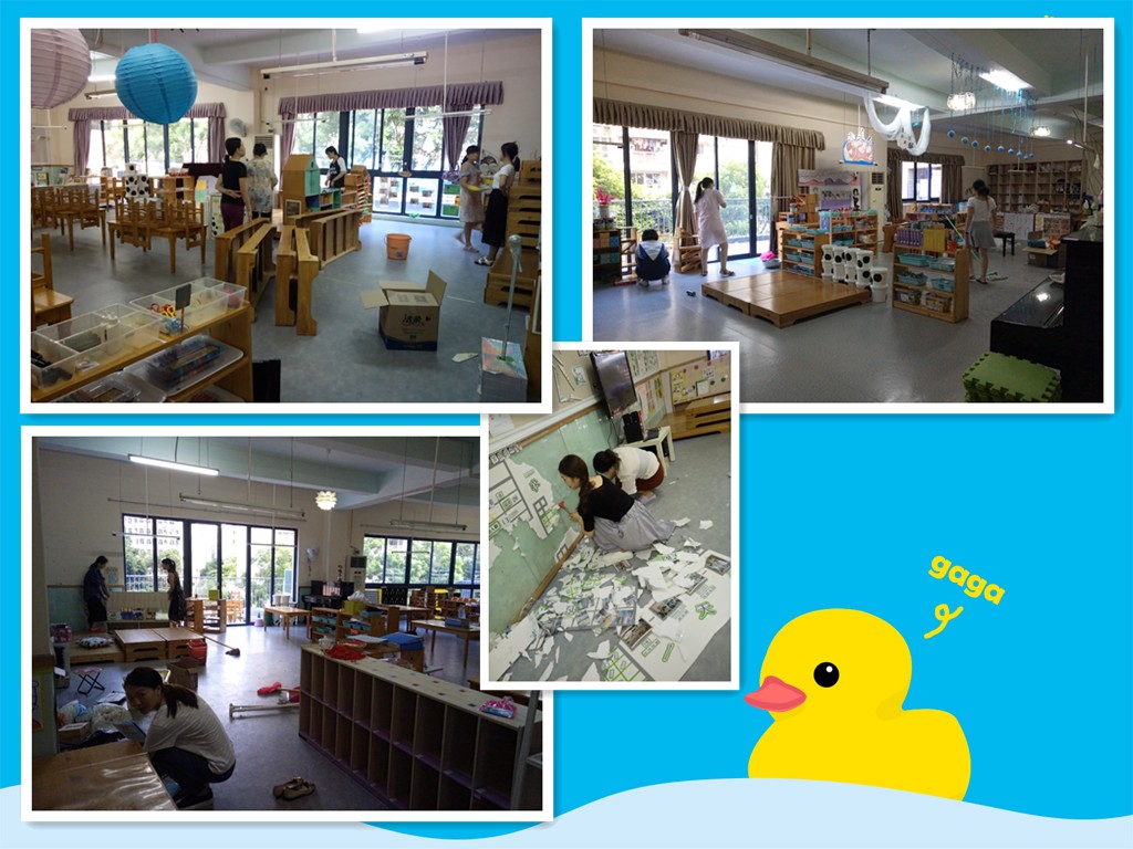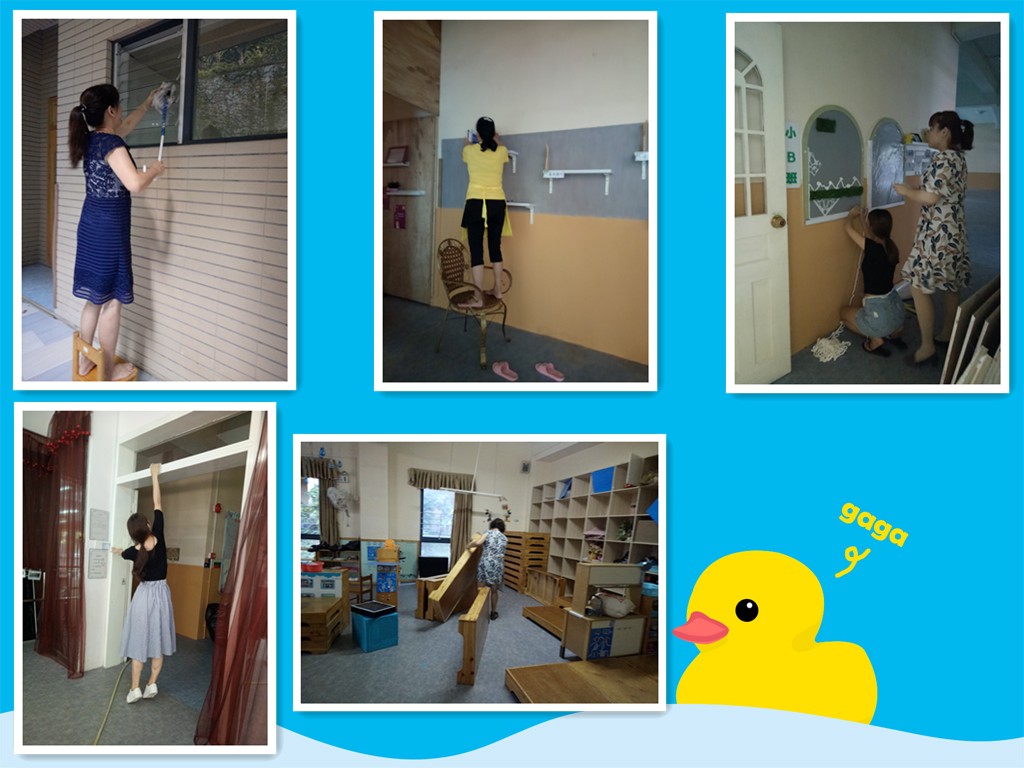 一個暑假過去了,幼兒園里都堆積了不少灰塵!老師們都在辛勤的打掃著,用魔法把幼兒園變的干凈整潔,開學了,小朋友們就可以安心快樂的住進來啦!
