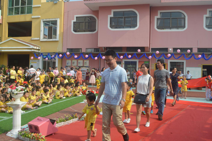 2017年9月1日上午8:30分,我們燕川幼兒園的全體師生、家長歡聚在一起,舉行本學期的開學典禮。在典禮上,我們首先歡迎本學期加入燕川幼兒園大家庭的新生和新生家長們,接著是升旗儀式,莊嚴隆重的升旗儀式,國旗冉冉升起,全體師生都心懷著激動和憧憬。燕川幼兒園是一個溫暖的大家庭,它賦予全體師生成長的力量。行政甘主任在開學典禮致辭中鼓勵全體師生為實現新學期的新目標共同努力,對本學期的工作與學習提出了新的希望,希望小朋友們珍惜時間,努力學習,養成良好的行為習慣。最后,教師律動表演,在《愛你》這首音樂的旋律下,教師介紹自己和班級理念。動感十足的音樂讓我們進入老師們歡快的舞蹈表演,展示了教師的風采和精神,從而家長會放心的把孩子交到老師的手中,信任老師,漸漸地進入了尾聲,整個典禮過程熱烈、莊重,掌聲不斷。