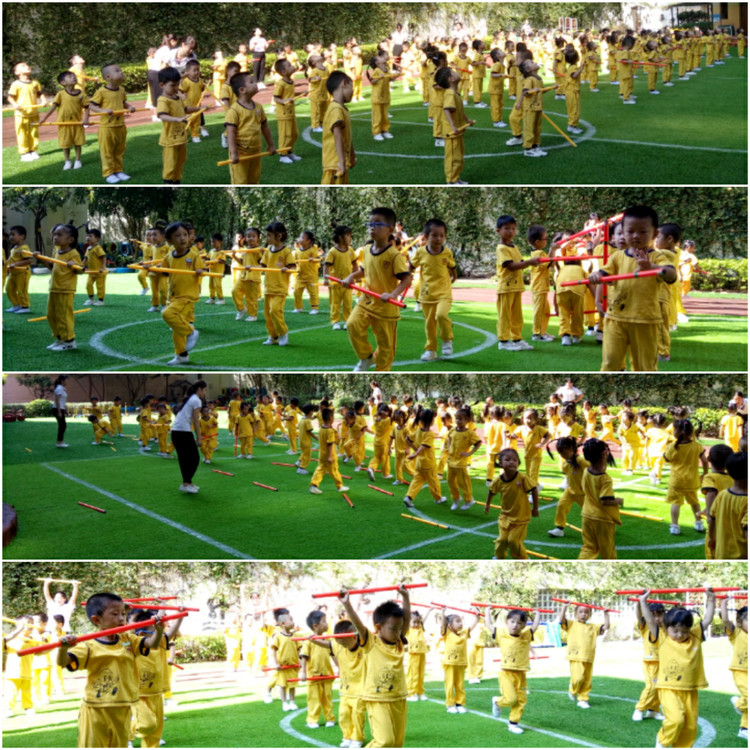 鮮明的主題,富有創(chuàng)意,別出心裁的編排,首先上場(chǎng)的是中班的小朋友,他們手拿“金箍棒”,為我們帶來(lái)了一場(chǎng)精彩的模仿操!為了激發(fā)小朋友的早操興趣,教師們巧妙的將金箍棒作為早操器械。 “山中無(wú)虎猴稱王,中班絕對(duì)最最強(qiáng)” 看!山中無(wú)老虎猴稱王了!