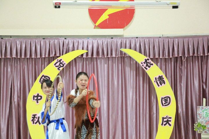 你看!首先是由老師們主演的情景劇《嫦娥奔月》!活動在黎老師輕盈曼妙的舞姿以及各位老師的傾情演出中迎來了陣陣歡呼!孩子們在欣賞中了解有關中秋的傳統習俗和神話故事吧!