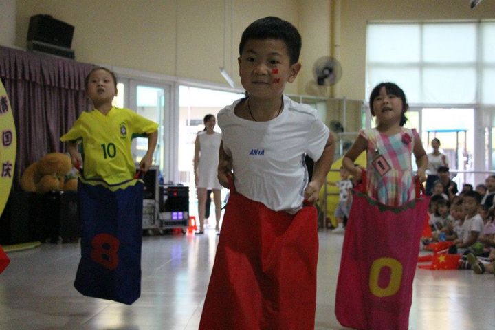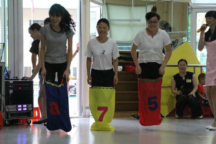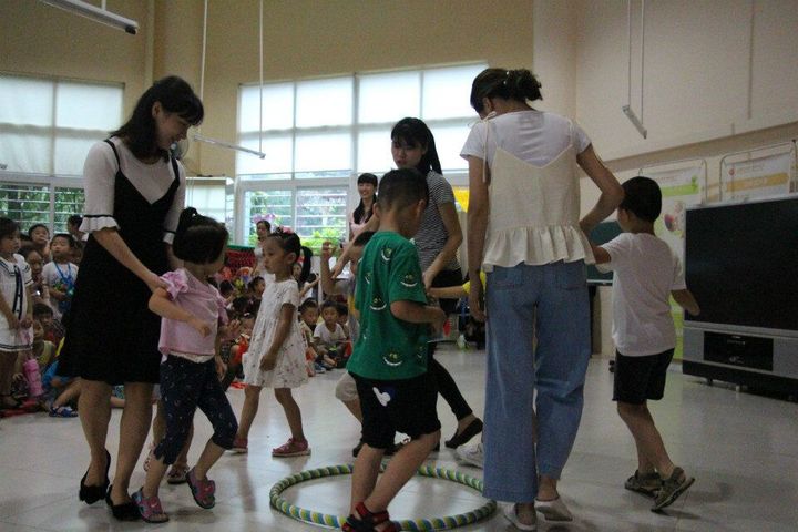 抱團游戲:《月圓家園事事圓》。在活力十足的游戲音樂中,老師和小朋友們大手緊緊牽著小手繞著圈圈走,在主持人出其不意的報數聲中,老師和小朋友們默契十足迅速跳入圈圈里緊緊抱在一起!
