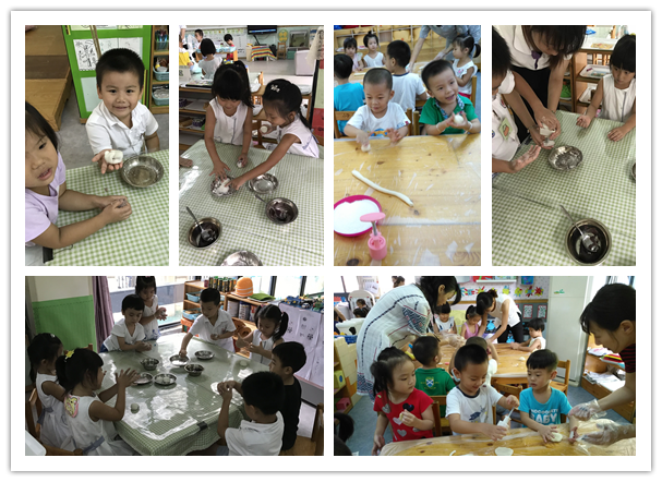 --猜猜我們在做什么?是紅豆餡的冰皮月餅哦!瞧,是不是很棒呢!