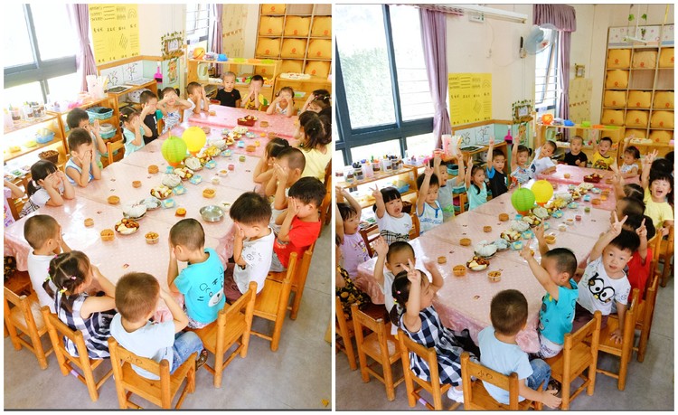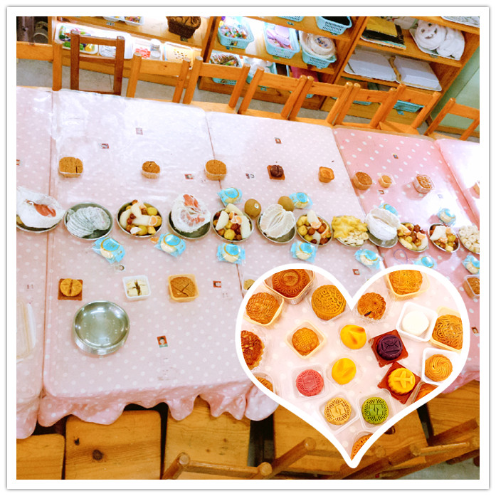 --啊唔,我們在一起分享好吃的,老師就像小鳥媽媽在給小鳥送來好吃的月餅...我們喜歡這個節日!