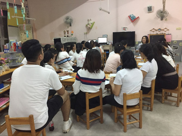 對于早期閱讀我園師資處于非常薄弱的狀況,因而時常給學習和研究帶來許多困惑,反映了教師專業化水平的缺乏,特別是思想觀念轉變與實踐、行動的脫節,缺乏實踐的總結研 討,往往使教學停止不前或前進步子太慢。作為幼兒教師,要想更好地對幼兒進行“傳道、授業、解惑”,必須重視自己的語言,要有一種既符合語法規范,又符合幼兒年齡特征和接受水平的語言風格,是非常重要的。為此,教師應力求在幼兒注意集中的時間段內,用精簡的語言有效地解決問題。幼兒年齡小,理解能力較弱,這就決定了教師在使用語言時應當避繁求簡。為了解決教師在日常教學活動中的困惑以及提升教師在閱讀語言方面的能力,本學期在教學處的引領與組織下,在2017年10月17日、18日組織了骨干教師進行優質課展示,并在10月18日晚上組織全體教師針對優質課程以及平時教學活動中存在的問題進行研討與分享。