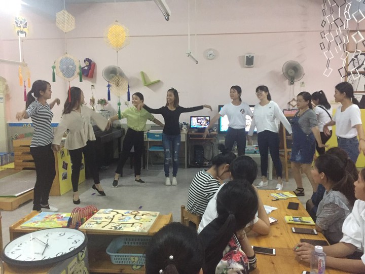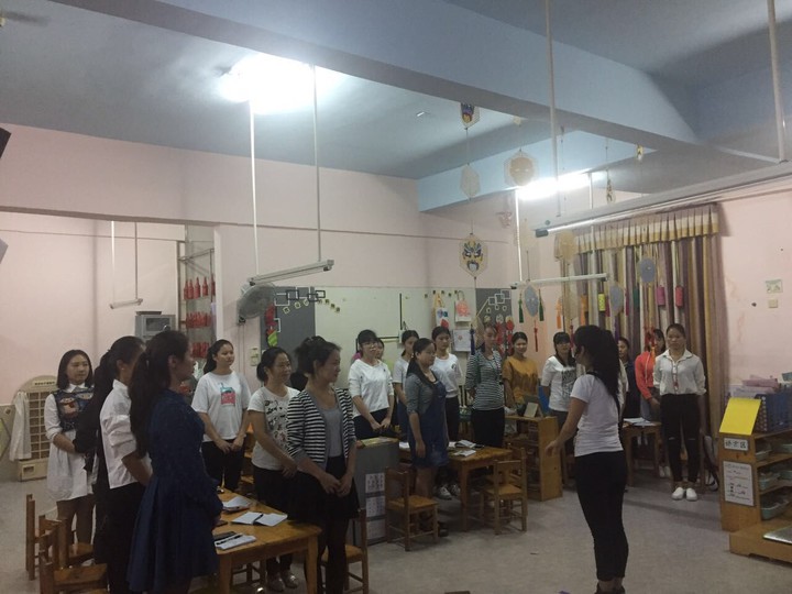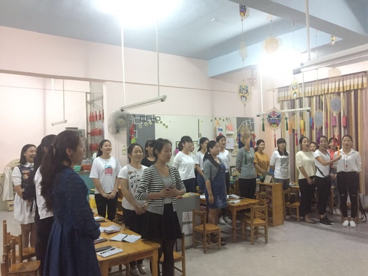 當(dāng)然教研中也還是會發(fā)現(xiàn)很多教師在進(jìn)行音樂教學(xué)時,方法過于保守,缺乏創(chuàng)新能力,或者對于新穎的教學(xué)方法信心不足、理解不透歌曲想要表達(dá)的具體內(nèi)容。在歌唱教學(xué)中發(fā)現(xiàn)教師會陷入了一個固定的教學(xué)模式,教歌詞——學(xué)節(jié)奏——跟唱,而且每次在歌唱教學(xué)的時候老師是最累的,以老師的范唱為主;小朋友的學(xué)習(xí)方式也比較被動,唱到后面都不太感興趣了,而且怎樣去引導(dǎo)孩子聲音的控制。有的孩子唱歌的時候聲音特別大,臉都紅了,這很傷害他的嗓子,遇到這樣的問題作為老師只有口頭的說,但還有沒有別的比較好的方法?在歌唱教學(xué)中幼兒需不需要一些歌唱的技能技巧?針對這一現(xiàn)象我們的教研活動現(xiàn)場進(jìn)行了研討,相關(guān)內(nèi)容給出了解決的方法。再運用鋼琴練習(xí)專業(yè)的發(fā)聲方法,實踐中去引導(dǎo)老師正確的練聲、氣息的運用、發(fā)聲的正確位置、如何保護(hù)好嗓子、音準(zhǔn)等,練習(xí)中對老師們進(jìn)行專業(yè)的輔導(dǎo),集體練聲時檢查老師們的發(fā)聲技巧,解決老師們聲樂中存在的困惑,讓老師理解后再去引導(dǎo)幼兒發(fā)出好聽的聲音,保護(hù)好嗓子。讓大家學(xué)會貼近幼兒認(rèn)知去教授、如何處理在歌唱教學(xué)中的重難點、正確的發(fā)聲方法、基本的音準(zhǔn)練習(xí),認(rèn)真的上好每一堂音樂課。教研出更好的方式方法讓幼兒更加喜愛我們的音樂,體會音樂所帶給我們的共同快樂。