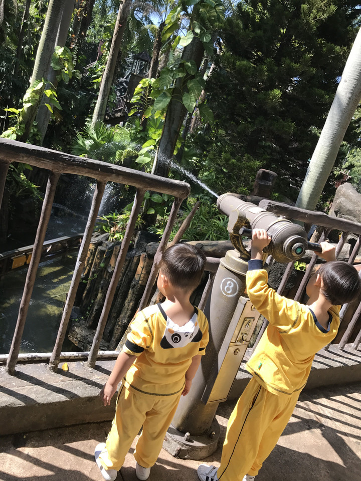 我們從主題園區:西班牙廣場、魔幻城堡、冒險山、金礦鎮、香格里拉雪域、陽光海岸、颶風灣、歡樂時光。接著來到《幻城》、3D影院、四維電影。每個幼兒臉上充滿了好奇,他們的心情是全然不同的,看著孩子們一張張天真的笑臉,此時我也被這種氛圍感染了!