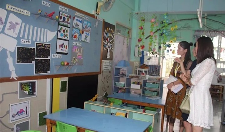 兩所幼兒園兵分兩路由教學行政帶隊進行參觀,從戶外區域的設置與器械投放到美術室、植物角這些精美功能室的介紹,幼兒園的角角落落與園所大環境相得益彰。同時老師們進入到了班級參觀班級環境,對我們主題環境的創設與區域材料的投放與使用贊不絕口。