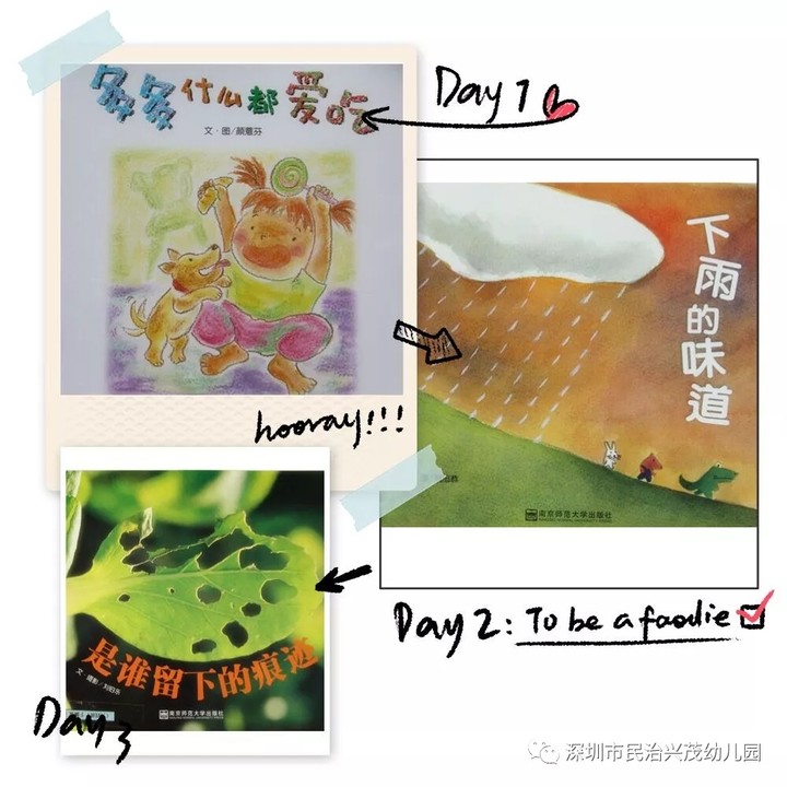 2018年5月-6月,在為期兩個月中幼兒園開展了三次早期閱讀課例觀摩?;顒訃@三個不同類型的讀本進行開展,小、中、大各推出了3種不同類型讀本課例觀摩,小班故事類《多多什么都愛吃》、中班散文類《下雨的味道》、大班知識類《是誰留下的痕跡》,重點聚焦語言教育與閱讀教育。