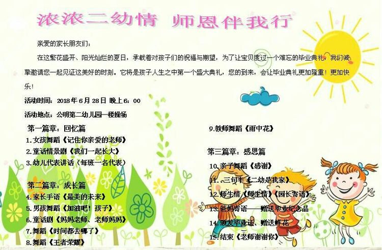 “濃濃二幼情,師恩伴我行” 公明二幼大班畢業典禮邀請函
