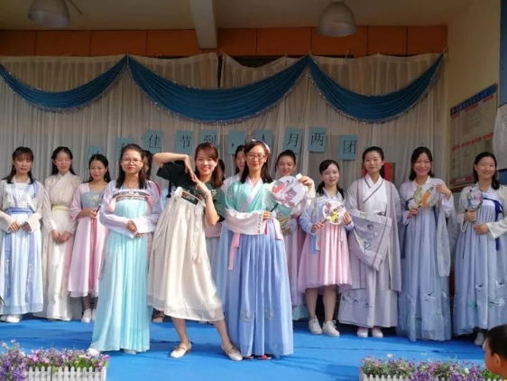 今日碧水園老師們身穿漢族霓裳,共同描繪漢唐盛世的優(yōu)美畫(huà)卷。