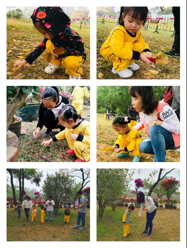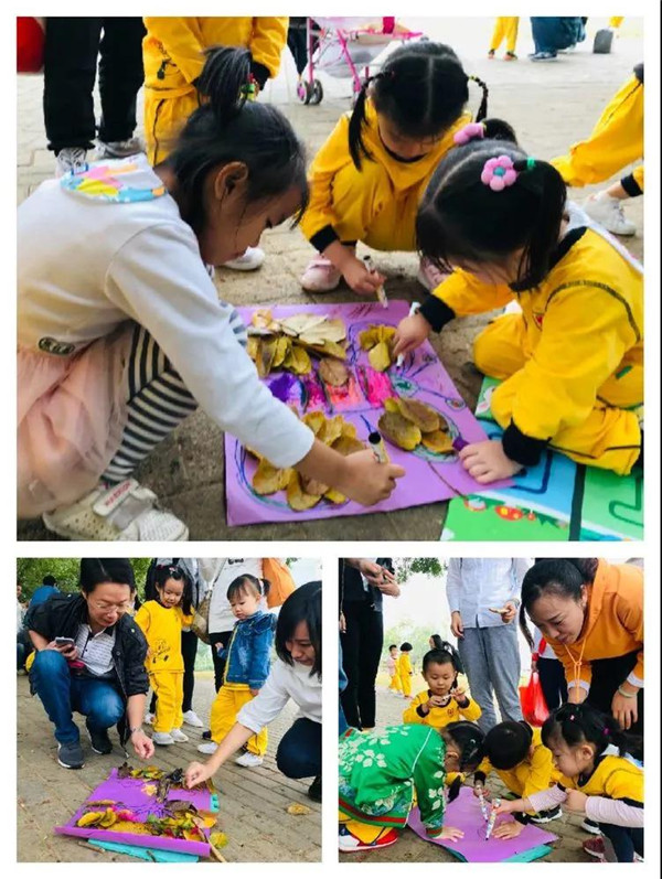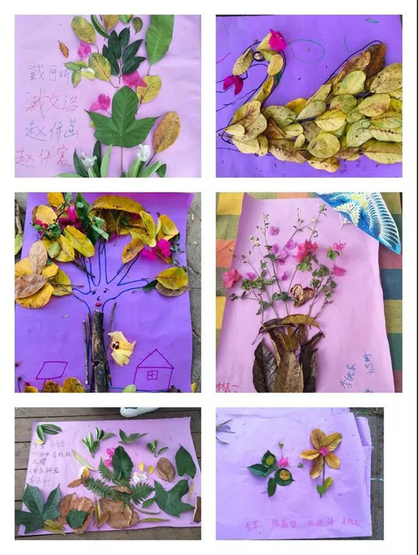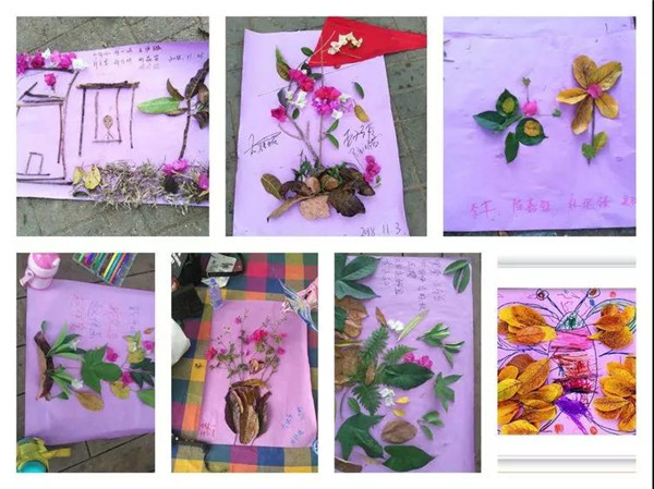 第二個環(huán)節(jié)是以大自然為主題,按小組為單位撿自然材料與爸爸媽媽共同完成一幅作品,比比誰的最好看!
