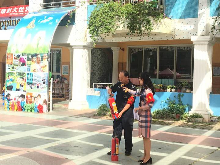 幼兒園使用的滅火器是干粉式滅火器,它適用于撲救各種易燃、可燃液體和易燃、可燃氣體火災,以及電器設備火災。接著聽一聽叔叔告訴我們滅火器怎么使用的: