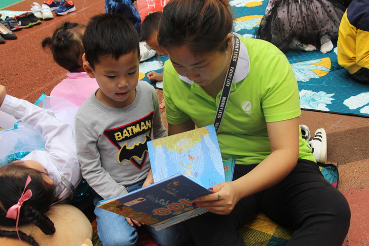 自主閱讀的時(shí)間到啦!有的小朋友坐在地毯上和老師津津有味的一起看書,有的則是圍繞著媽媽,聆聽故事,多美好的時(shí)光啊!