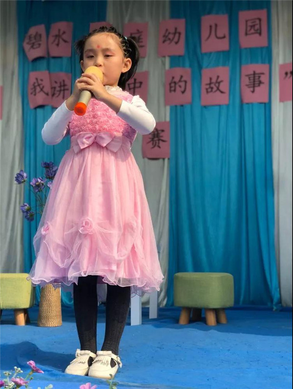 接下來是中班的小朋友上場了,通過一年多的幼兒園學習,中班寶貝的語言能力進步很大,在舞臺上已能做到落落大方,講起故事引人入勝。