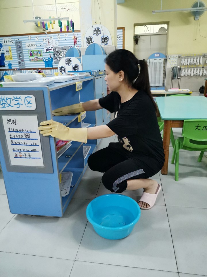 瞧,各教職工掃的掃、抹的抹、擦的擦、洗的洗、沖的沖,干勁非常足,大家對幼兒園各個角落進(jìn)行衛(wèi)生大清除,做到不留死角、不留盲區(qū)。