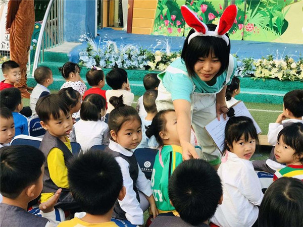 小朋友們可喜歡看故事啦!瞧!孩子們紛紛舉起小手,想要和可愛的兔子姐姐分享自己喜歡的角色呢!