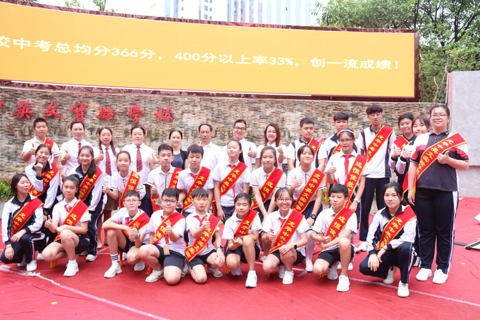 集團(tuán)麥麗芬副總裁和學(xué)校領(lǐng)導(dǎo)早早到校門口歡迎同學(xué)們