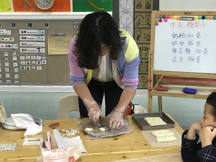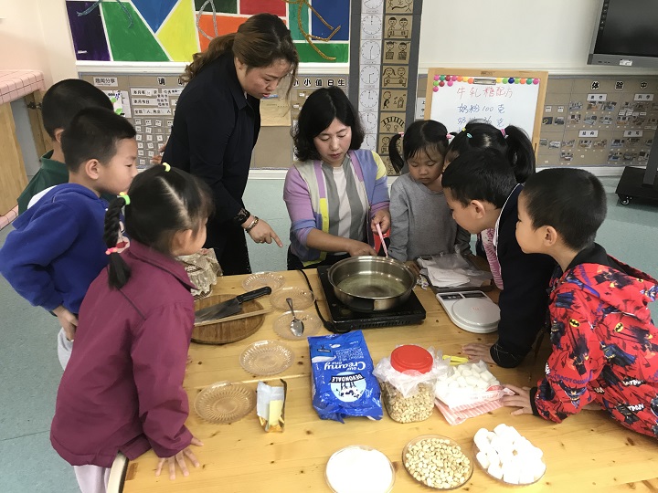 “哦,原來我們吃的牛軋?zhí)鞘沁@樣做成的呀”,通過觀察與親身體驗,了解一樣食物的制作過程,這樣的學(xué)習(xí)是不是很有趣呢?