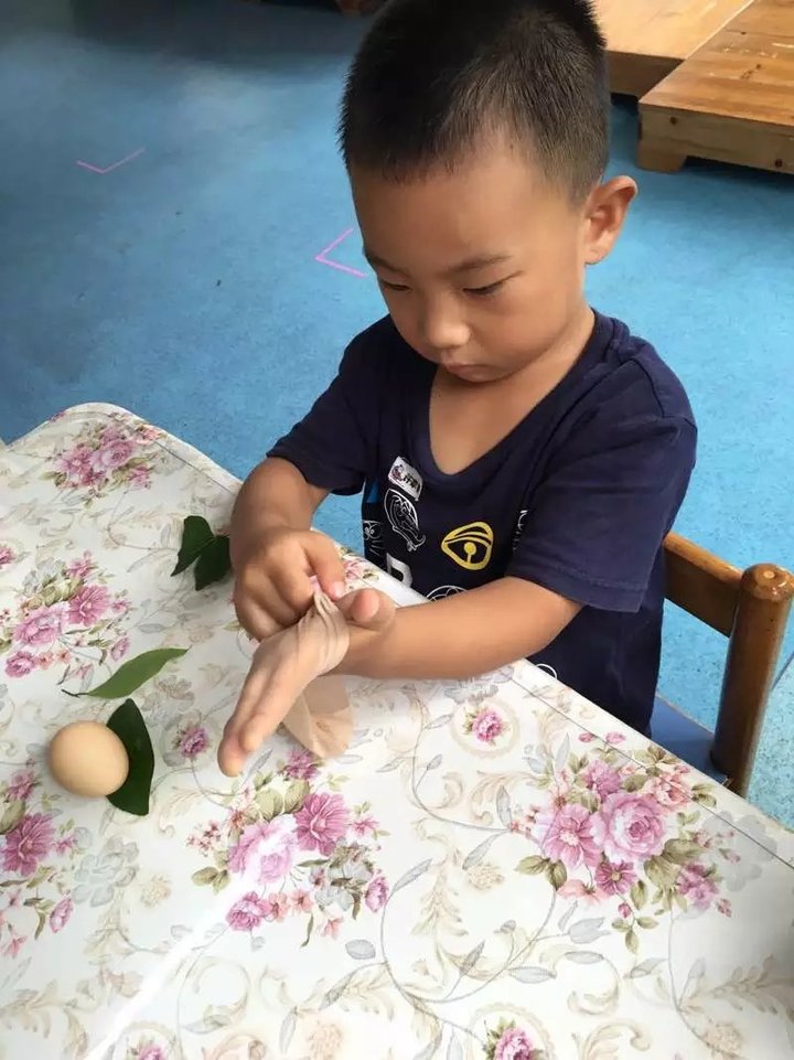 葉子染蛋,給雞蛋貼好樹葉,套上絲襪,加點洋蔥皮,看看有什么神奇的事情會發生?