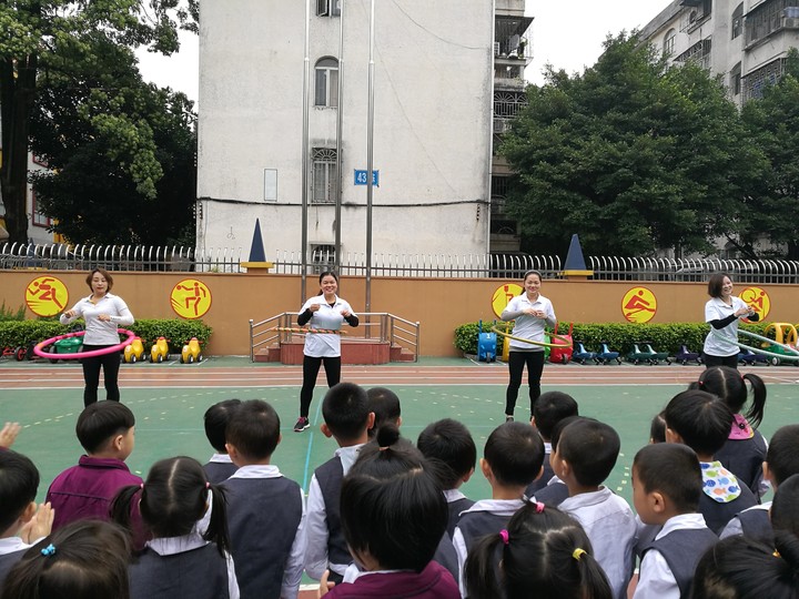 媽媽們進行轉(zhuǎn)呼啦圈展示。