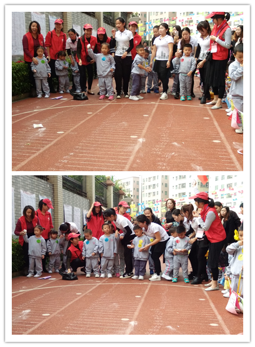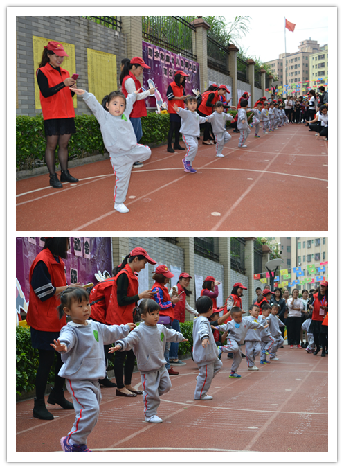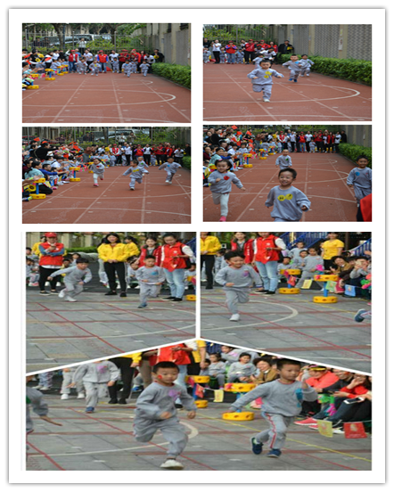 我們的小小運動員盡管人小,但士氣十足,在同伴和家長的助威下,他們一鼓作氣,你爭我搶,絕不認輸地向終點飛奔而去。