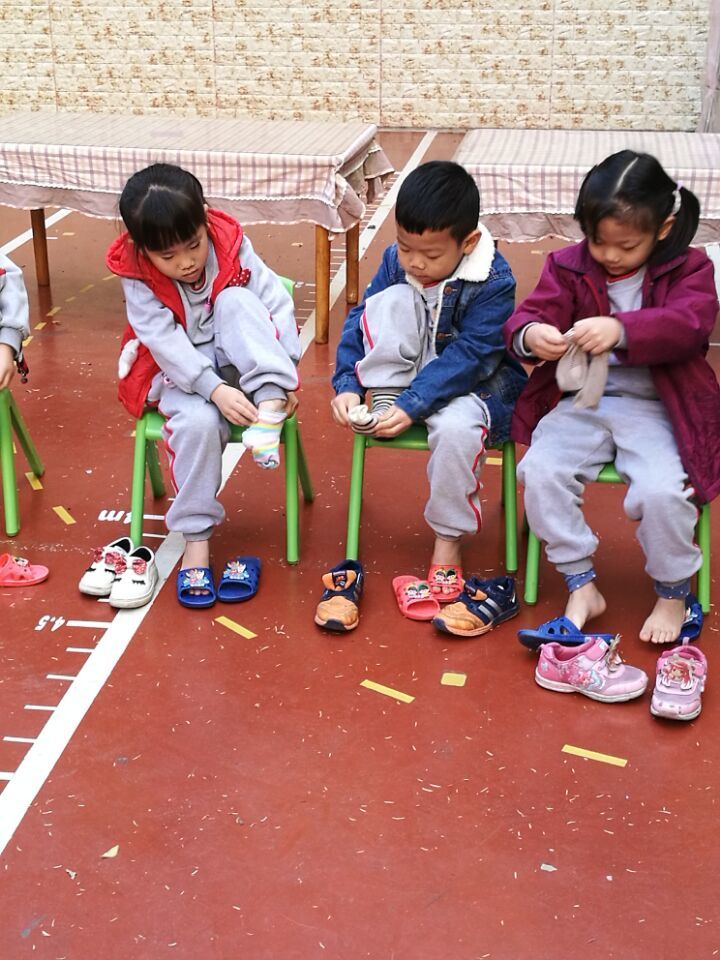 輪到中班組的我們上場了,我們是穿鞋穿襪小能手。