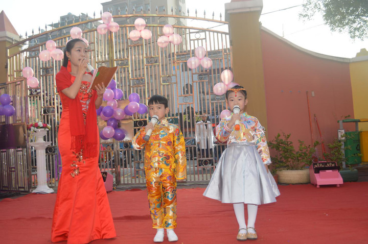 幼兒園門口充滿創意的氣球秀,五彩繽紛的花環,主持人閃亮登場啦!