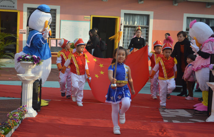 新的一年,開啟新的希望,新的征程,承載新的夢想。2017年2月13日上午8時,燕川幼兒園在操場上舉行了隆重而有意義地開學典禮暨“金雞報春”主題活動。當國歌奏響時,四位升旗手護衛著國旗,步履軒昂大步向前走,神氣活現,贏得了老師、家長和小朋友們贊賞的眼光,有的家長則成了攝影師,他們拿著照相機,為孩子們記錄下這珍貴的時刻。鮮艷的五星紅旗正伴著國歌迎風飛揚,全體師幼翹首以盼,盼望新學期、新夢想、新收獲。伴隨著激昂有力的國歌,鮮艷的五星紅旗徐徐升起,全場的家長們、師生們跟隨著樂曲唱起了國歌,歌聲嘹亮,悅耳動聽。