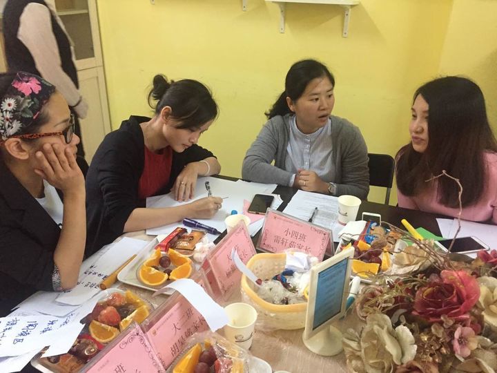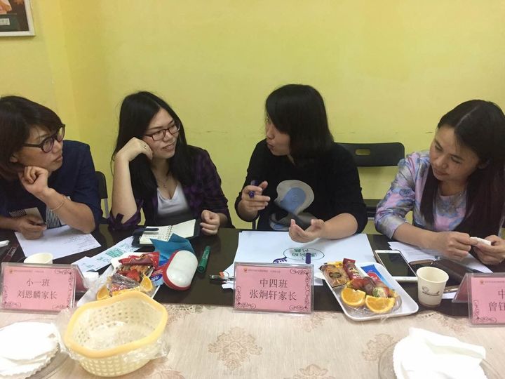 隨著彭園長(zhǎng)拋出的三個(gè)問題,12位家長(zhǎng)自主成立3個(gè)小組,在研討中針對(duì)問題展開了熱烈的討論,集思廣益,涌躍發(fā)言,提出了各自合理化的意見和建議,互動(dòng)氣氛輕松、愉快。