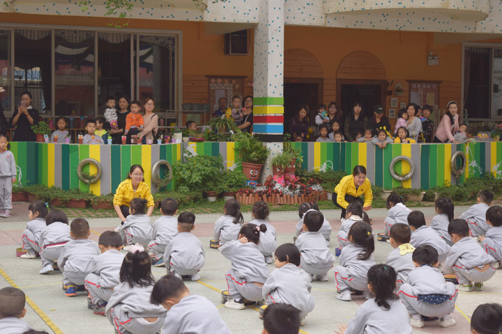 活動正有序地進行著,首先給大家展示的是小班級本學期的"趣味罐子操"。寶貝們那一張張稚嫩又可愛的臉龐,正邁著整齊的步伐,燦爛的微笑寫著他們的熱情,仿佛在對小弟弟妹妹們說:“”雖然我們才讀小班,但今天我們可是哥哥、姐姐了呢,一定要做個好榜樣給這些弟弟妹妹們瞧瞧小班級的早操有多厲害"。在戶外活動區域,大家對廢舊物自制的樂器、神秘的種植園、手動抽水機和滑梯可感興趣了,孩子們玩得不亦樂乎。在繪本館的有趣英語游戲、美術館創意的手工制作等,這群好奇寶寶天生就是探索家,對所有新鮮事物都感到好奇,在小禮儀們的帶領下一一嘗試,原來,快樂是如此簡單。