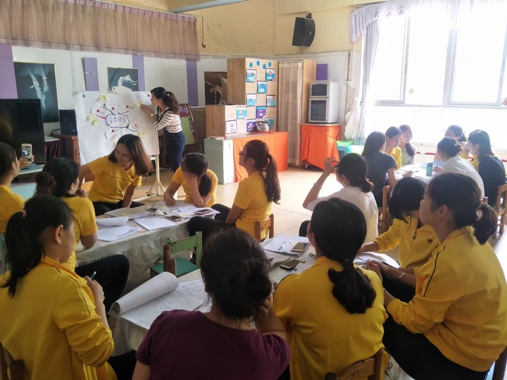 在觀摩活動中,老師們把自己對創意音樂欣賞的理解放在了課堂實踐中。4月19日,集團幼教中心萬老師對我園音樂活動進行觀摩后,做出了點評,對每一個老師做出具體的指導。那么,具體該怎樣上好一節創意欣賞活動呢?欣賞是以“聽”為主,用身體的各個感官去感受音樂,再用肢體動作、游戲等多種形式來表現音樂。而且在課堂上老師要做到循序漸進,從細到大。那么,欣賞音樂是欣賞音樂里的什么?欣賞音樂可以是欣賞音樂里的情緒、節奏、民族風、區式結構以及音樂里面特別的聲音。在萬老師幽默有趣的點評下,讓我們把創意欣賞活動理解得更加透徹,從而能夠創新立意。觀摩教研是讓老師們能快速成長的主要途徑之一,只有通過不斷地思考、實踐、反思、再實踐,才能讓創意音樂活動的水平提高。