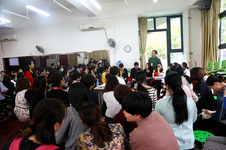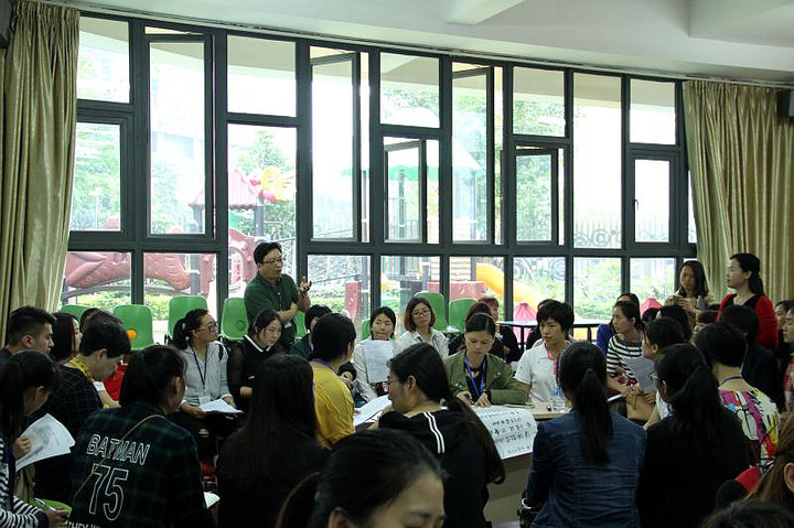 為展示寶安幼教集團辦學成果,共享我區最先進的教育教學經驗,發揮公辦園在學前教育發展中的引領、示范作用,經寶安區教科院綜合教研部與幼教集團共同研究、策劃,決定向全區骨干幼兒園的開展系列半日觀摩集體教研活動。寶安區教科院以《幼兒園工作規程》為統領,穩步推進《幼兒園教育指導綱要》、《3-6歲兒童學習與發展指南》、廣東省《幼兒園一日活動指引》對課程教學的各項要求,突出學習環境在幼兒教育中的基礎性作用,強調一日生活的合理安排,規范園本課程建設,有重點、分階段推進我區幼兒園教育教學工作,不斷提升教師的教育理念和專業水平。2017年4月25日上午在寶安區教科培秦義老師的組織下在寶安區新城幼兒園面向全區骨干幼兒園進行了全語言和戶外自主活動的半日觀摩活動。