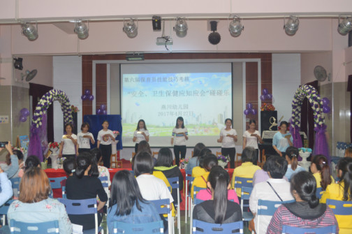 2017年4月27日晚上7:00在燕川幼兒園的多功能室內,舉行了以“保育、安全應知應會碰碰樂”為主題的考核活動。
