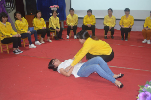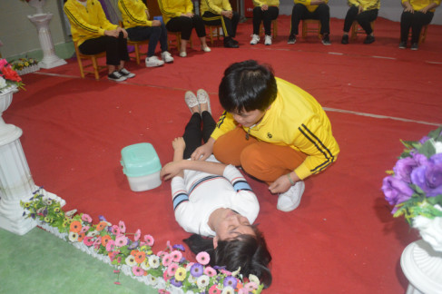活動開始前以一段郎朗上口的《安全快板》拉開了本次活動的序幕!緊接著進入本次活動的第一環節,全體保育老師根據自己抽到的題目依次進行實操展示。通過實操展示活動與搶答環節可以看出平時保育員在日常生活中積累的安全常識究竟有多少。看:老師們個個都是有備而來,實操展示都是有模有樣的,搶答環節更是激情四射,競爭非常激烈。