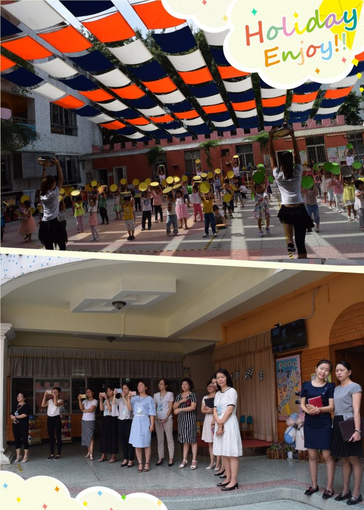 其次,公明二幼的孩子們向工作室的客人老師展現(xiàn)了我們小中大三套早操,為了給公明二幼的孩子們一個(gè)愉快、健康的童年,每天都能在精神飽滿(mǎn)、體力充沛的狀態(tài)中度過(guò)每一天。我們根據(jù)幼兒的年齡特點(diǎn),從實(shí)際出發(fā),結(jié)合《3-6歲兒童學(xué)習(xí)與發(fā)展指南》《綱要》中對(duì)健康領(lǐng)域的目標(biāo),大膽探索早操結(jié)構(gòu)、器械的利用和音樂(lè)的選擇,將教育理念融入早操之中。主要體現(xiàn)在“一活——內(nèi)容豐富,形式多變”,“二趣——游戲多變,富有創(chuàng)意”。