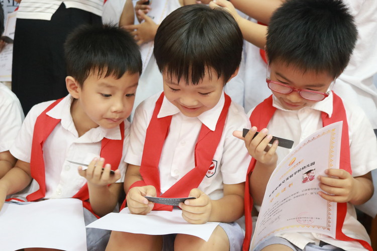 手持夢想號動車車票及幼兒園畢業(yè)證書,孩子們開心極了......