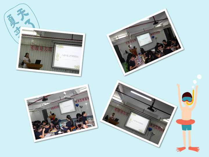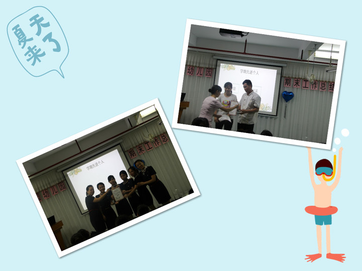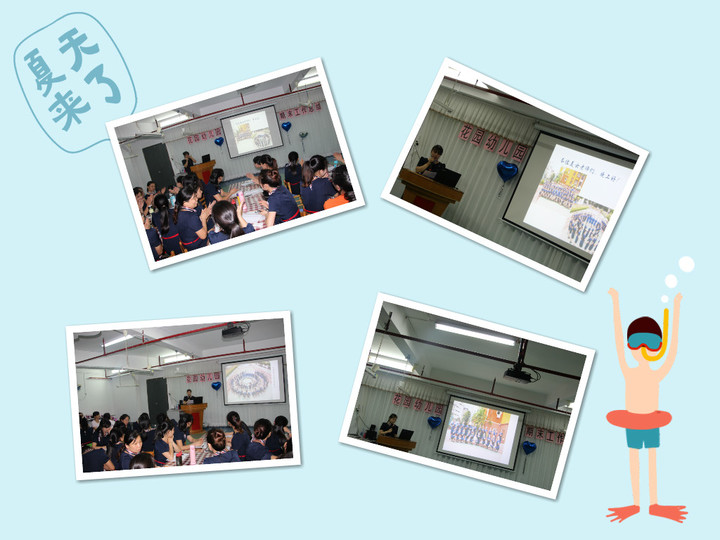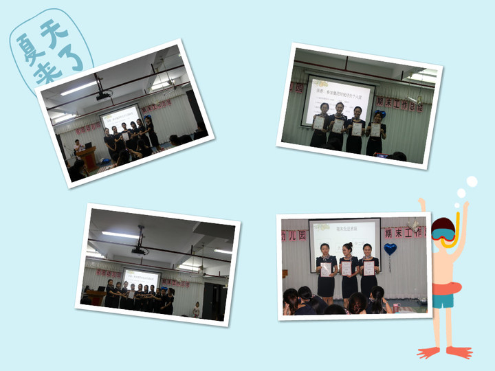 最后是壓軸出場的曾園長對幼兒園本學期的工作進行總結。首先曾園長對老師們一學期來的辛勤付出,給予了肯定與贊揚;她對本學期的教育教學、衛生保健、安全常規等工作進行了總結,并對今后如何提高保教水平、完善制度化以及如何打造幼兒園特色、進一步提高教育教學質量做了實際性的計劃。