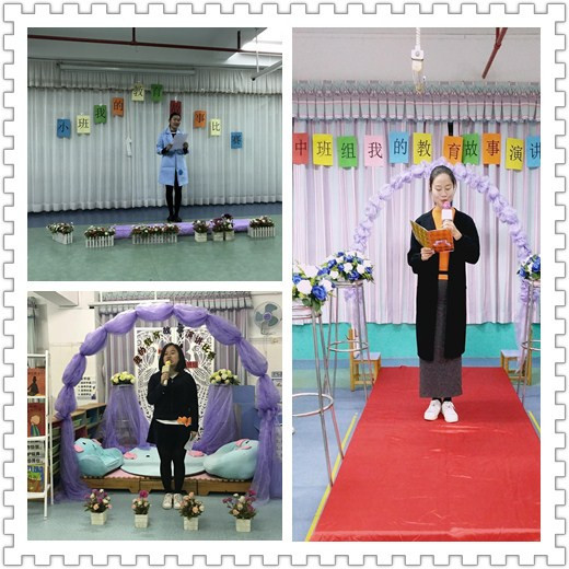 以闡釋集團的“41”體驗課程、“勵志不矯情”、“厚重不虛華”為主題,通過共享美好教育之歷程,展示師者之靚麗風采的方式,來達到提高我園教師的綜合素質,增強對幼教職業的認知的目的。花園幼兒園于2017年11月22日晚,以年級為單位,開展了“我的教育故事”演講初賽。