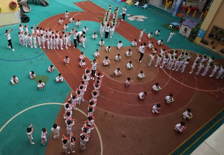 本次體操?gòu)囊魳?lè)的選擇、動(dòng)作編排到隊(duì)形設(shè)計(jì),都融入了老師們的創(chuàng)意和教育智慧。體操包含隊(duì)列、操節(jié)、體能、放松四大部分。整套體操下來(lái)把多種形式的運(yùn)動(dòng)項(xiàng)目融為一體。