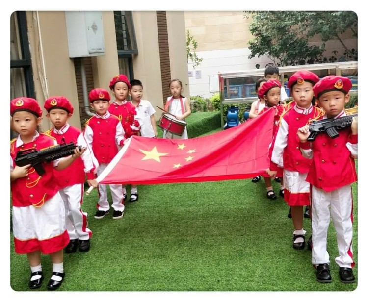 典禮在莊嚴的國歌聲中拉開了序幕,大班的小升旗手們踏著整齊的步伐護旗入場,全體師生對著冉冉升起的國旗行注目禮。
