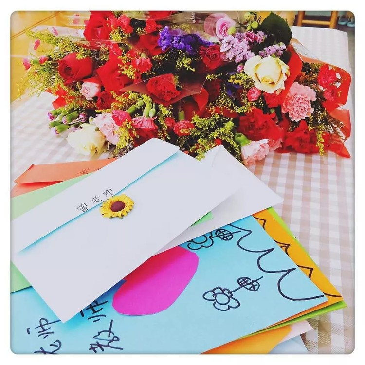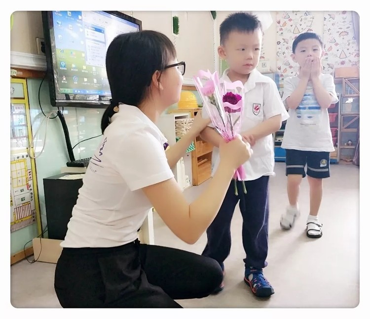 鏡頭一:孩子們?yōu)樽约旱睦蠋熕蜕瞎?jié)日的祝福,如清泉般的甘甜涌入到老師們的心田,讓老師們在最美的節(jié)日沉醉在幸福的花海中。