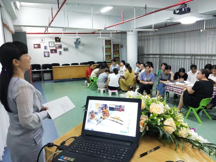 本次比賽是在前期有教研、中期有實踐的基礎上,班級老師精心準備后開展的。晚上6:00,老師們在音體室聽完主持人講解規則后,回到各自的班級搭建積木。
