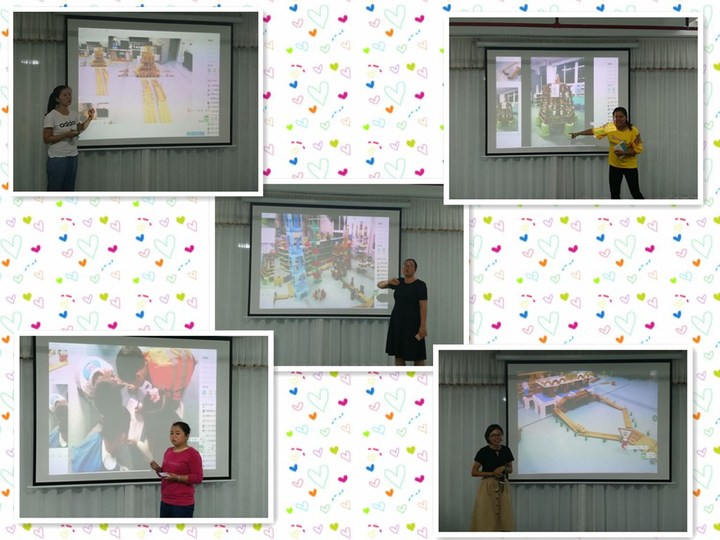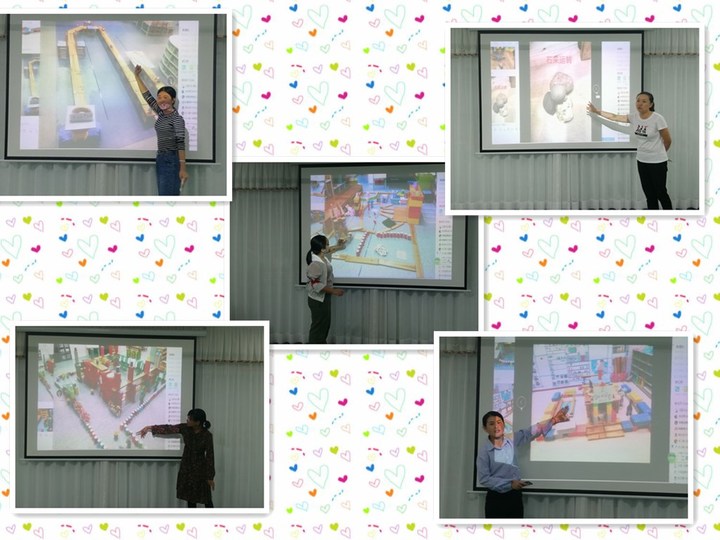 搭建結束后,老師們再次回到音體室分享自己的“作品”,向大家展現了屬于他們心中的精彩世界。幼兒園還組織老師們進到班級互相觀摩學習,相互介紹、探討搭建方法,積極尋找改進措施。
