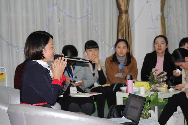 鄒主任進行閱讀月工作匯報,向姐妹園一同分享學習閱讀月活動開展歷程。