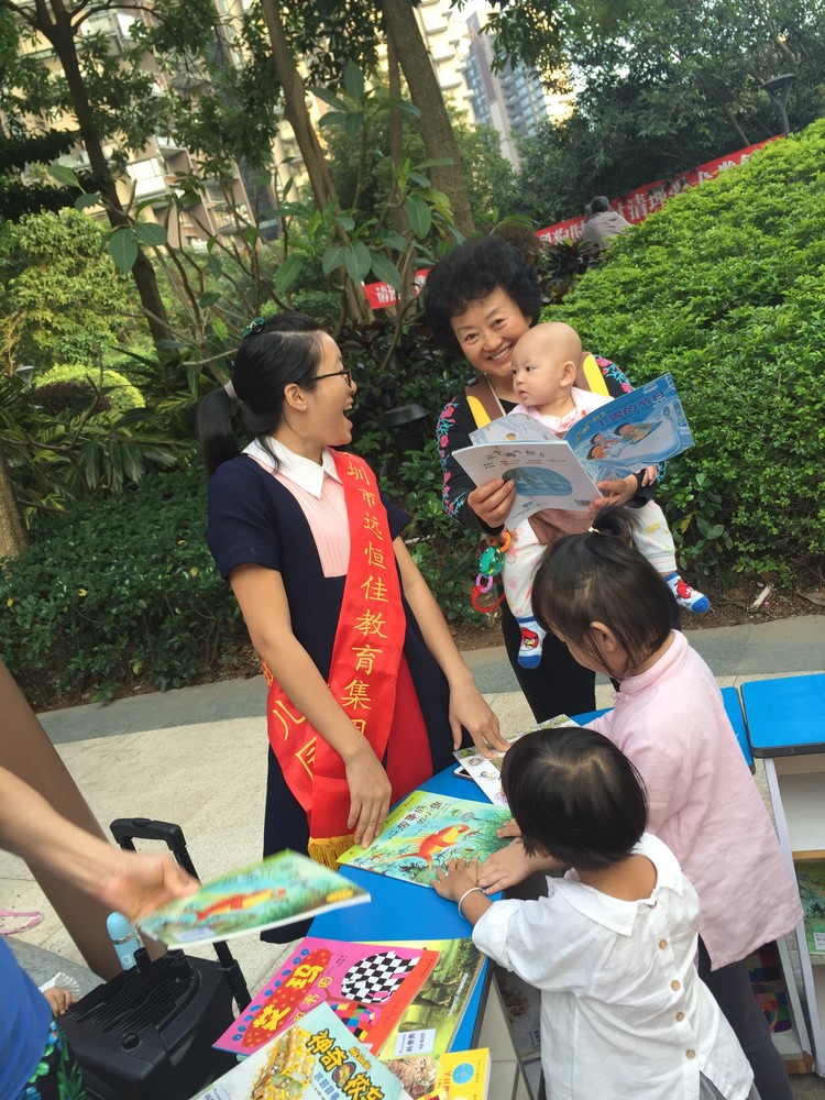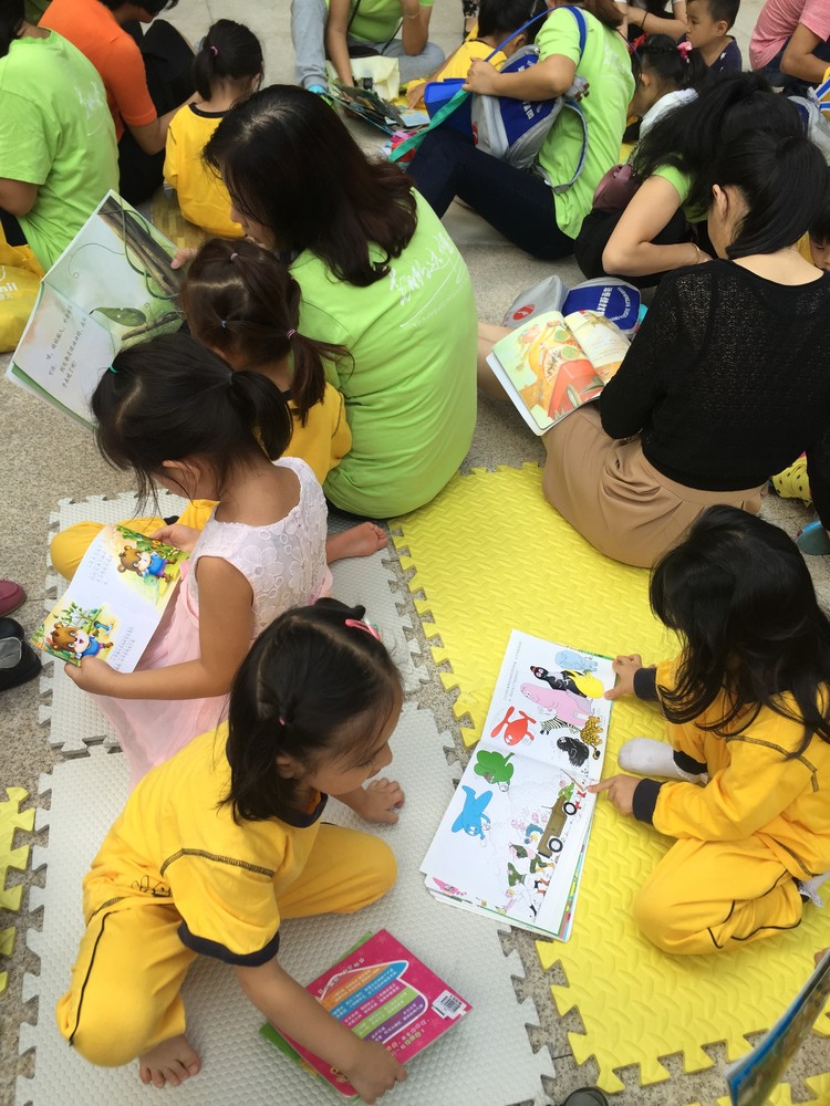 在園內匯演的同時,我們的圖書進小區也在進行著。小朋友們在家長的領下都在聚精會神的閱讀。