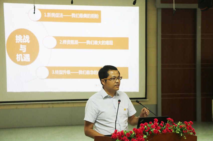 時(shí)間: 2017-09-04 作者:yuanhengjia 閱讀次數(shù): 2461“教師的愿景就是要讓每一個(gè)孩子在他成長的每一個(gè)階段都有成長”,近日,公明中英文學(xué)校召開新學(xué)期教職工大會(huì),集團(tuán)董事會(huì)宋遠(yuǎn)標(biāo)總裁這樣闡述教師的愿景。