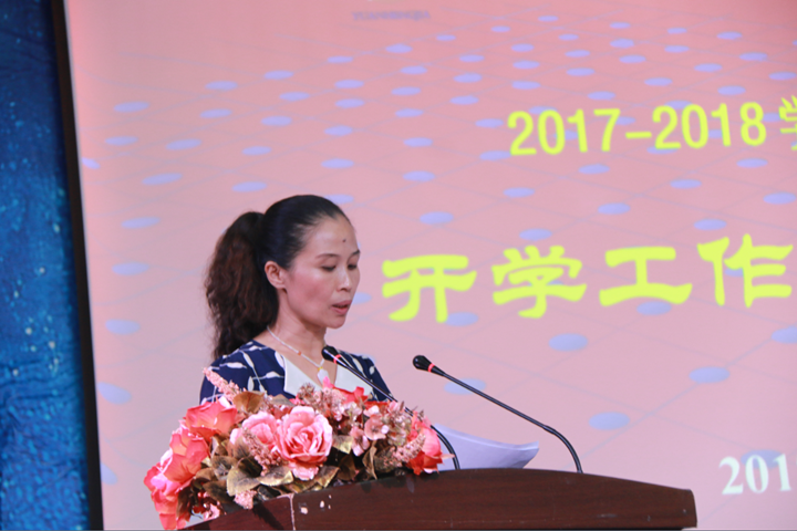 開學工作會議由學校金玉善副校長主持。會議首先播放了集團新建重慶遠恒佳公學宣傳片,重慶遠恒佳公學是集團大投入、高規格建設的一所從幼兒園、小學、初中、高中到大學預科的十五年一貫制學校,將建成一所環境優美舒適、設施設備一流、功能場館高端的高質量學校,學校將于2018年5月落成,將于2018年9月開學。重慶遠恒佳公學將成為莘莘學子實現理想的教育搖籃。