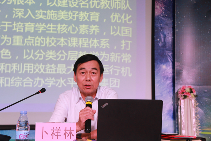 卜祥林校長在會上提出了重點推進“一二三四五”優質特色教育工程的具體工作思路,對“育人核心、決勝兩考、辦學特色、結構優化、教育教學改革”等方面的工作都做出了提綱挈領的解讀,為新學年的工作描繪了一幅更加美好的教育藍圖。