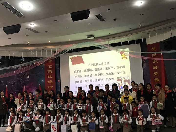 時間: 2017-12-26 作者:yuanhengjia 閱讀次數: 25482017年12月15日下午,龍華中英文實驗學校實驗部一年級學生在多功能報告廳舉行了新隊員入隊儀式。為迎接這個神圣的日字子的到來,一年級進行了隊前教育,各中隊提前開展了“隊知識回顧”等系列活動,學生們遞交了書面的入隊申請書。